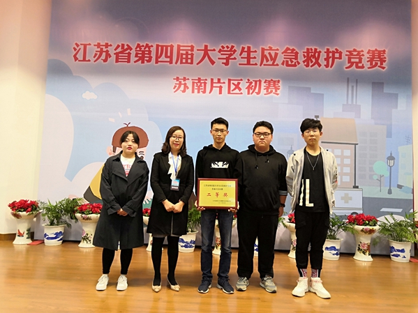 10月23日,我院大学生健康中心主任王琴老师带领蒋辰、沈梓铭、顾月沪和袁宇星四位同学参加了在江苏科技大学举办的江苏省高校第四届应急救护竞赛苏南片区初赛,与来自苏州市、无锡市、常州市、南通市和镇江市等5市19所高校的选手通场竞技,最终荣获二等奖。