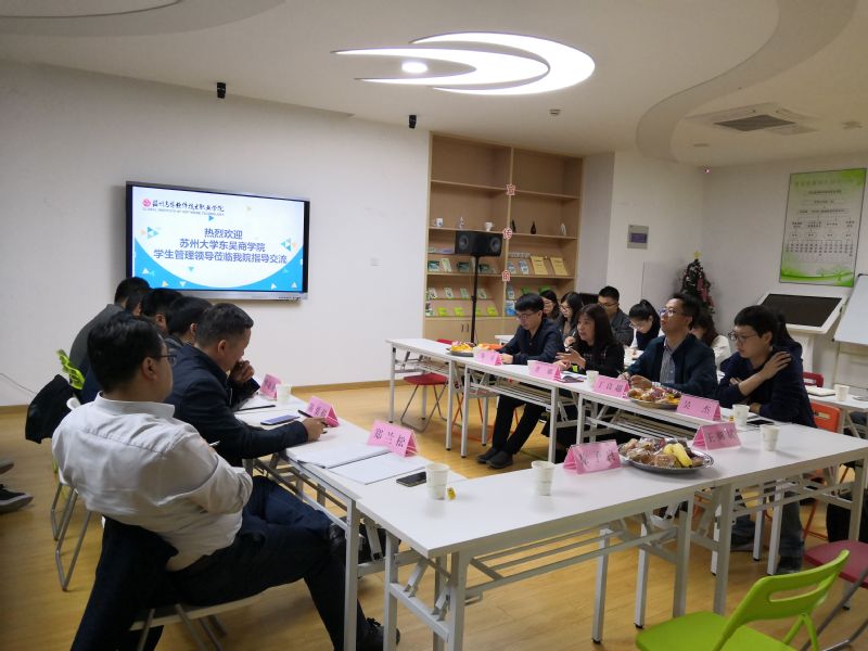 第二项是苏州大学东吴商学院学管工作经验分享交流活动,东吴商学院党委副书记、副院长董娜结合自己20多年的工作经验,从“辅导员沟通技巧”、“学生社团管理”和“辅导员个人发展”三个方面进行了工作经验分享。随后我院辅导员与东吴商学院学管团队就毕业生管理、学工团队建设、学生干部培养等内容进行了交流。
