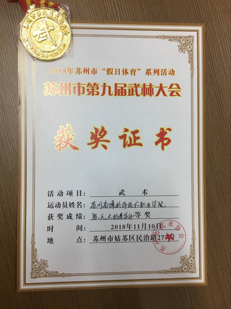 本次大会,学校派出由顾吉诚老师为教练、高亮老师为领队的12名队员参会。参会队员利用课余时间认真准备、刻苦训练,经过顾老师的精心指导,全体武术队员不负众望,发挥稳定,荣获本次大会陈氏太极拳团体一等奖的好成绩。