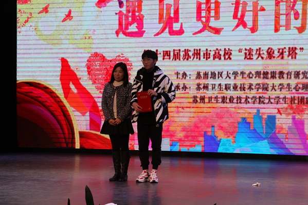在刚刚结束的苏州高校第十四届“迷失象牙塔”心理剧大赛决赛中,我院与其他七所兄弟高校同场竞技,最终凭借出色的编剧、演员的精湛演技,赢得了满堂彩,荣获一等奖,这是自2013年我院参加这个项目以来的荣获的最好成绩。