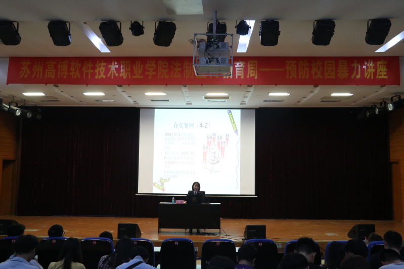 为进一步引导我校学生树立正确的法治观念,提高法律意识,营造平安、和谐、文明的校园育人环境,5月15日下午14:00,学校在报告厅举行“预防校园暴力”法治教育主题讲座,特邀虎丘区人民检察院丁楠检察官主讲,学生处全体人员、各学院学工负责人、全体辅导员和近600名学生参加讲座,讲座由学生处邹艳星处长主持。