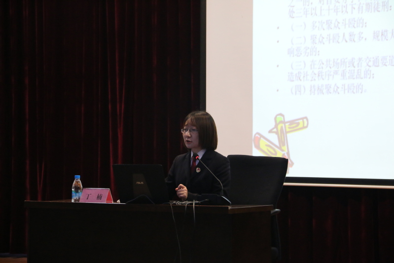 丁检察官从同学们生活中的事情入手,深入浅出地对同学们进行青少年遵纪守法、预防未成年犯罪、杜绝校园欺凌等多方面的法治教育,具有很强的针对性和实用性,特别是结合具体案例,生动形象的阐明了校园生活中不文明现象及其危害,提高了学生遵纪守法的自觉性和自我保护能力。同时还强调现在青少年法律意识普遍比较淡薄,当自身利益在受到侵犯时,不懂得用法律来维护自身的合法权益。今后,希望同学们一定要增强自身的法律意识,学会拿起法律的武器保护自己。