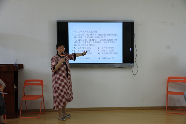 王静老师从自己担任二级学院学生管理工作的经验着手,和大家分享了如何利用心理健康知识来促进学生管理工作尤其在宿舍人际问题处理中的运用,随后王老师从当代大学生人生发展课题、青春期自我认同-自我混乱的特点、成年早期的特点以及宿舍的意义和特点四个方面给大家分享了为什么当代大学生容易产生宿舍人际冲突,以及如何去看待和处理这些冲突。王老师结合实际的案例娓娓道来,让在场的辅导员们深受启发,学会从多个角度和方面重新来看待和认识学生宿舍问题发生背后的原因,不仅让辅导员可以进一步的了解学生的特点,也有了新的处理宿舍人际问题的思路。