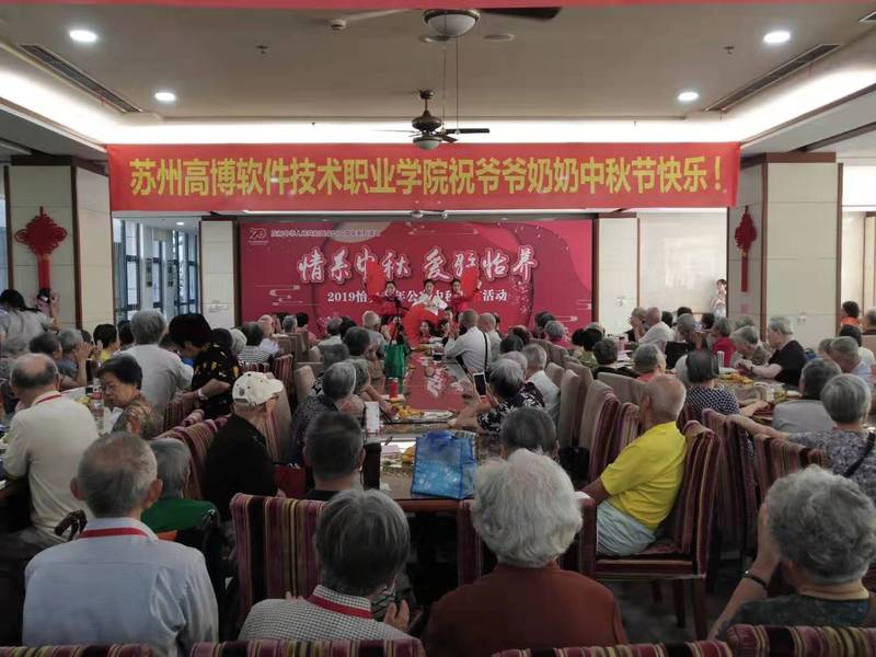 下午14:00,受苏州高新区图书馆委托,我校大学生艺术团30多名学生来到苏州怡养老年公寓,举行“情系中秋,爱驻怡养”联欢活动。活动中,同学们上演了众多老人们爱看的节目,并与高新区图书馆的工作人员一起和老人们现场制作手工灯笼。精彩的文化盛宴,让老人们深切感受到节日的氛围和社会大家庭的温暖,体验到了节日的喜庆及满足感。