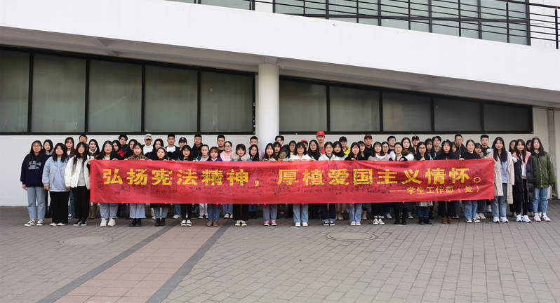 学校举行“弘扬宪法精神,厚植爱国主义情怀”横幅签名活动