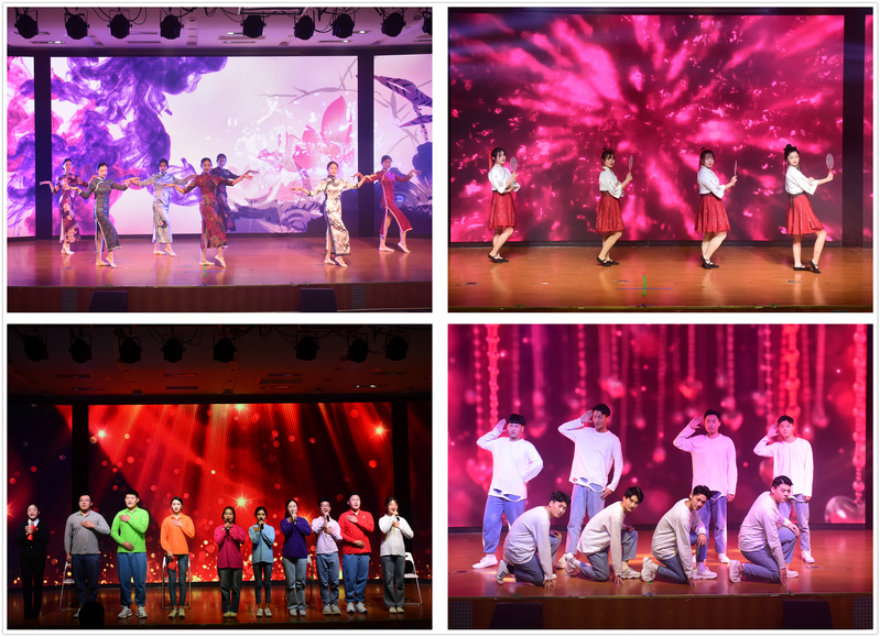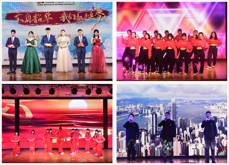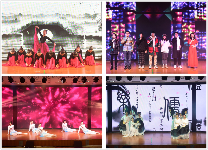 在晚会正式开场前,炫彩的灯光秀点燃了全场气氛。古典舞《风飘絮》、《书简舞》演绎着中华民族五千年的文明史造就了辉煌灿烂、博大精深的民族文化。旗袍仪态舞《秦淮景》体现抗日战中,金陵女子在危难的时刻放下个人的生与死,去赴一场悲壮的死亡之约,深深打动了观众;民间舞《山河已无恙》述说山河已无恙,英雄可归家,吾辈当自强,复兴有希望;《年代歌曲串烧》中经典歌曲轮番登场,将温暖发声,凭借走心的情感,唤起几代人的青葱回忆;动感欢快的现代舞《赞赞新时代》带领全场观众一起走进新时代;由辅导员蒋运奇、周磊和江世杰三位老师带来的《流行歌曲串烧》,歌曲悦耳动听,引起全场大合唱,掀起了晚会的高潮;抖音短视频舞蹈串烧用动感的舞步展示着青春的风影;微团课《争做新时代好青年!》展示团干部践行五四精神,当好党的助手和后备军的决心;抖音古风舞蹈《归去来兮》和《芒种》轻盈优美、婀娜多姿;男团舞蹈《一笑倾城》配合着活力四射的舞姿,生动演绎着阳光男孩的飞扬青春;女团舞蹈《梦想女孩》配合酷炫的灯光效果将晚会推向了高潮;晚会在歌曲、手语表演《我们都是追梦人》的欢快节奏中结束。整场晚会精彩纷呈,表演形式丰富,内容新颖,晚会中掌声不断,高潮迭起,取得了圆满成功。