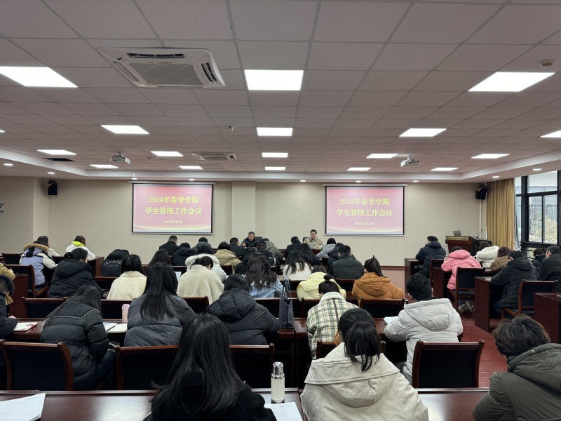 为铆足干劲,开创新篇,确保2024年春季学期开学各项学生工作平稳、有序、高效开展,做好学生思政教育及服务管理,奋力推动学生工作高质量发展。2月23日上午,学校在行政楼215学术报告厅召开了2024年春季学期学生管理工作会议,学校党委副书记、副校长徐子良,各二级学院学工负责人,学生处全体成员及全体辅导员参加此次会议,会议由学生处处长邹艳星主持。